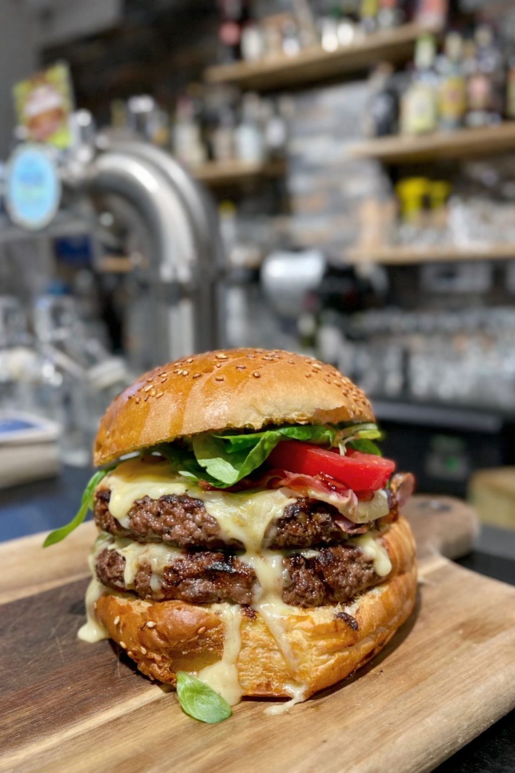 ( Steak haché, Oignons, Poitrine fumée, Reblochon, Tomate, Salade, Sauce burger, Buns de notre boulanger)